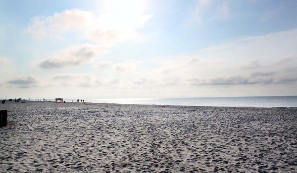 There are bathrooms and a water fountain available at the beach park, as well as outdoor sand showers to rinse off sand from the beach and a picnic pavilion with shaded tables and a playground for kids.